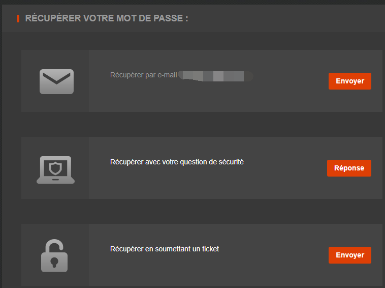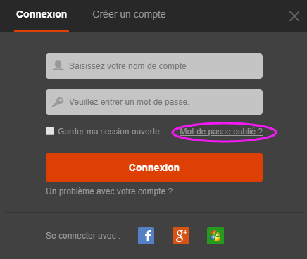 Vous pouvez réinitialiser votre mot de passe à des fins de sécurité ou le modifier si vous l'oubliez. Veuillez cliquer sur "Mot de passe oublié ?" sur le panneau de connexion, ou bien allez ici :