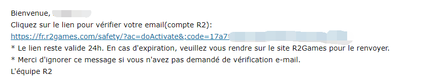 • L'adresse e-mail actuelle liée à votre compte R2Games