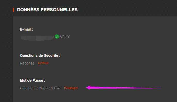 Si vous souhaitez modifier votre mot de passe, rendez-vous sur la partie Sécurité de votre Compte.